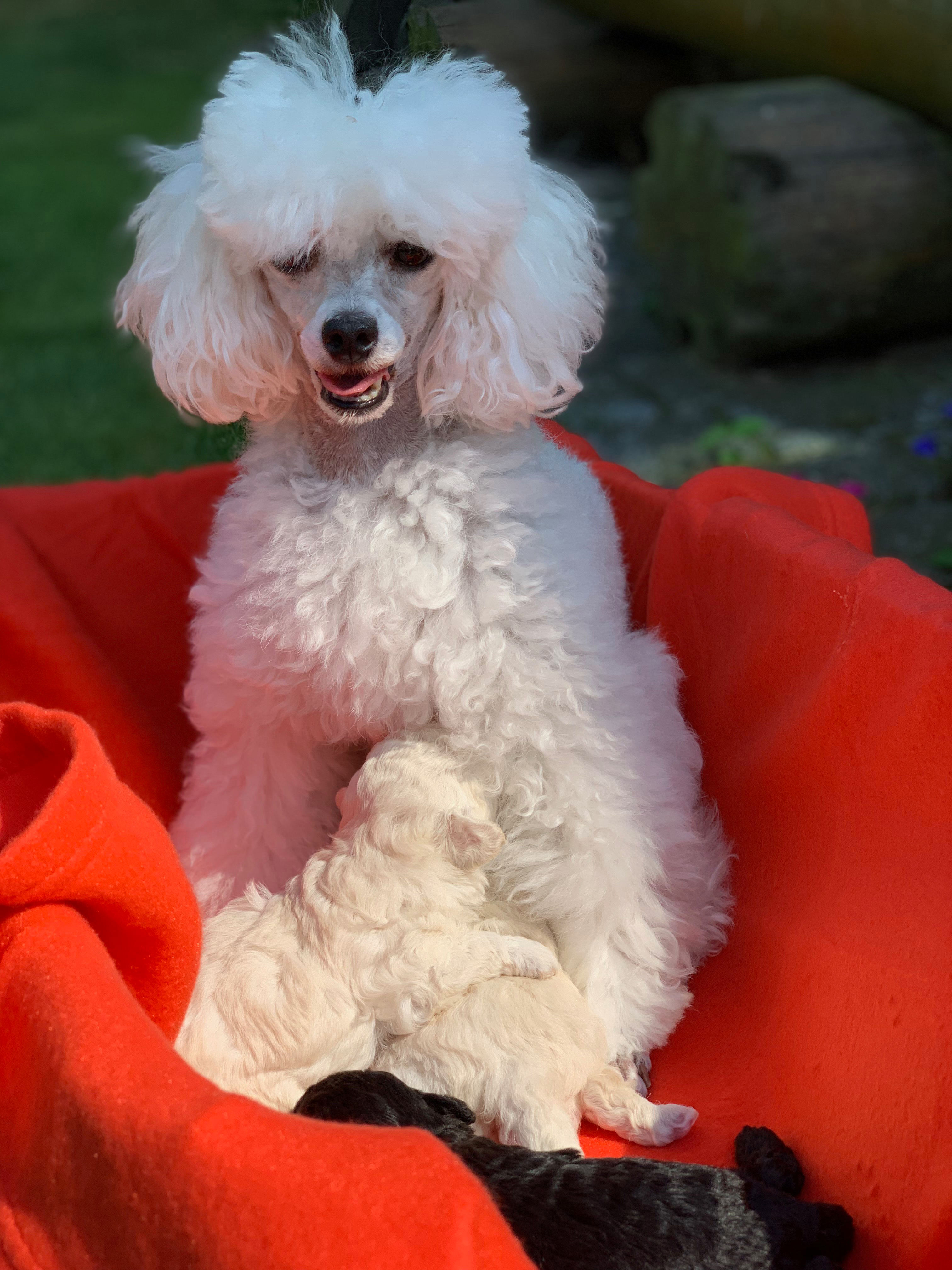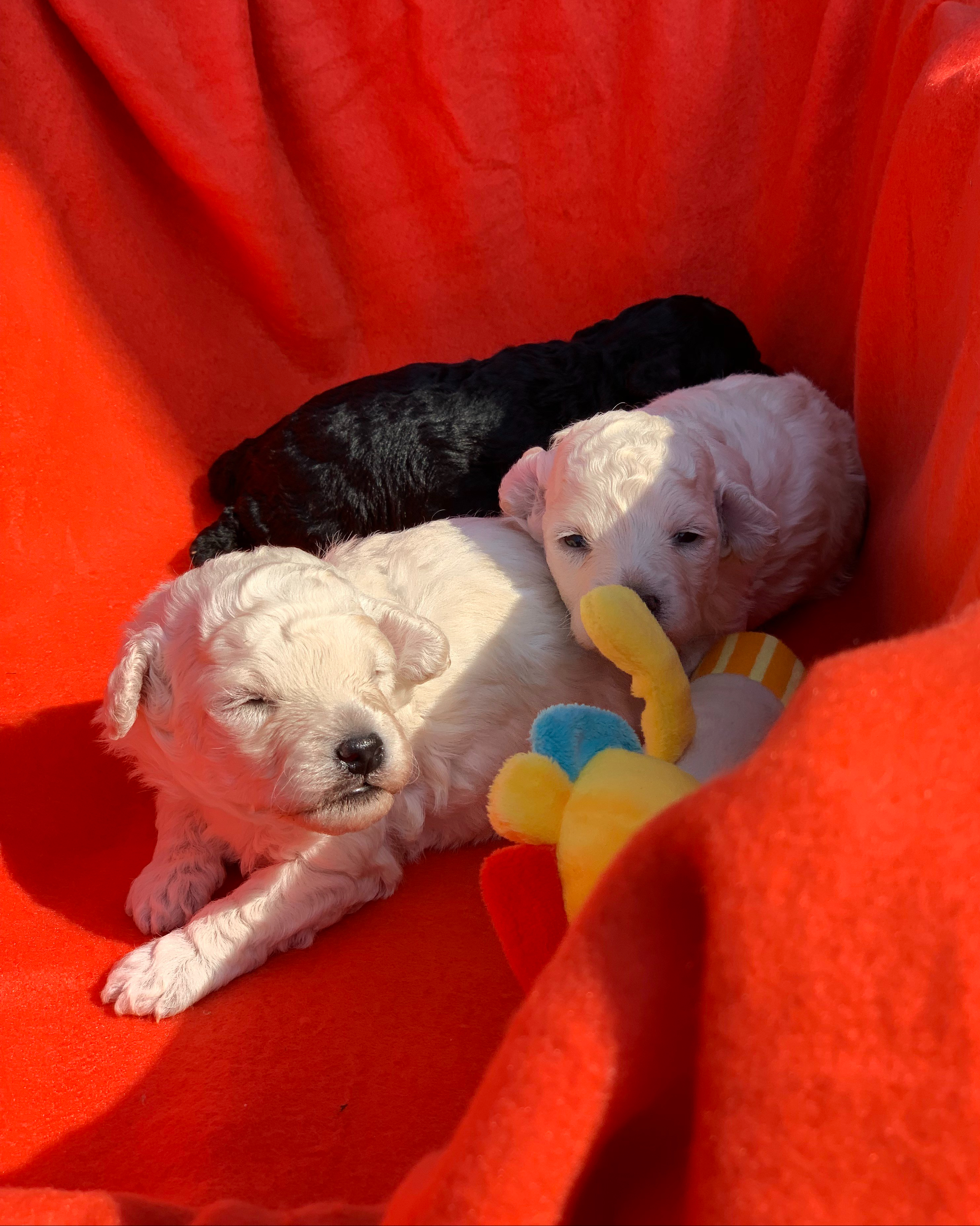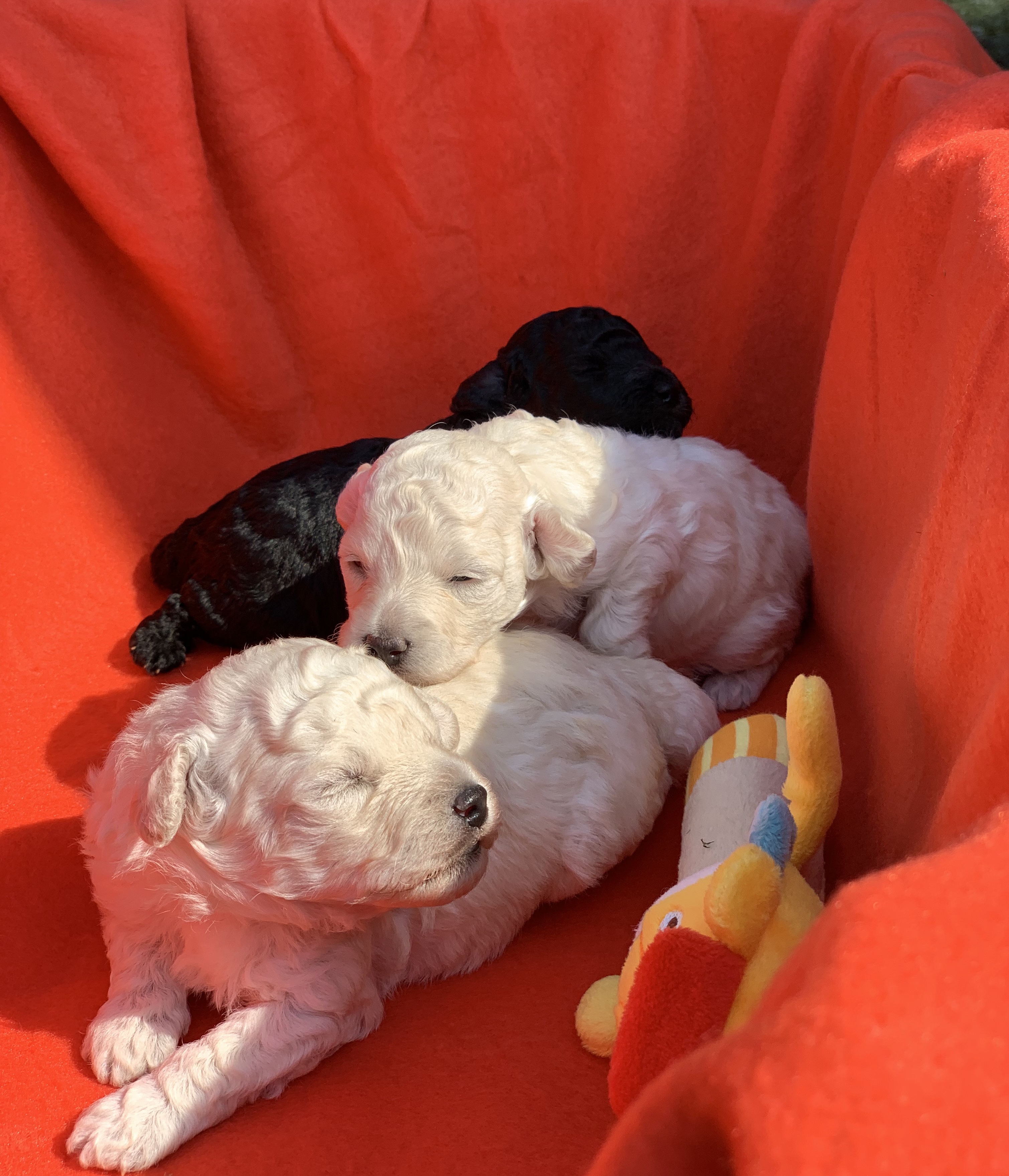 Wir haben weißen und schwarzen Toypudelnachwuchs. Geboren am 11.08.2025 zur schönsten Zeit des Jahres.