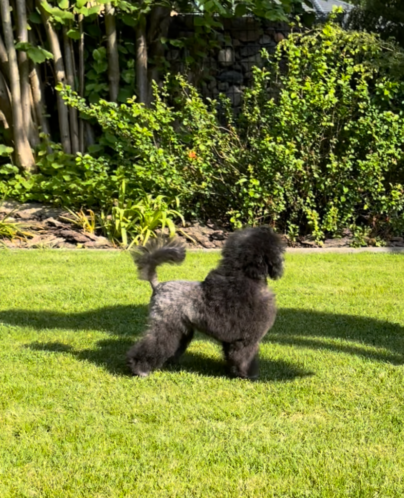Velvet ist jetzt 3 Jahre alt. Leider finden wir keinen passenden Rüden für eine Verpaarung. Es wird also mit silbernem Toypudeln im Kennen „Wallenberg’s“ noch etwas dauern.