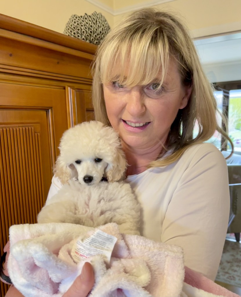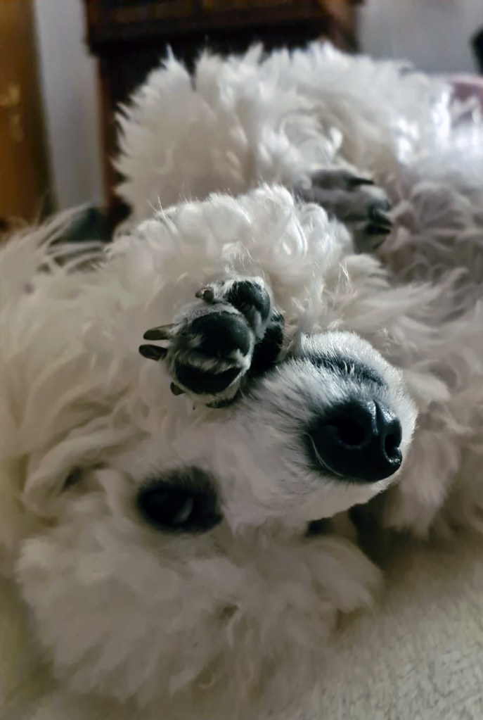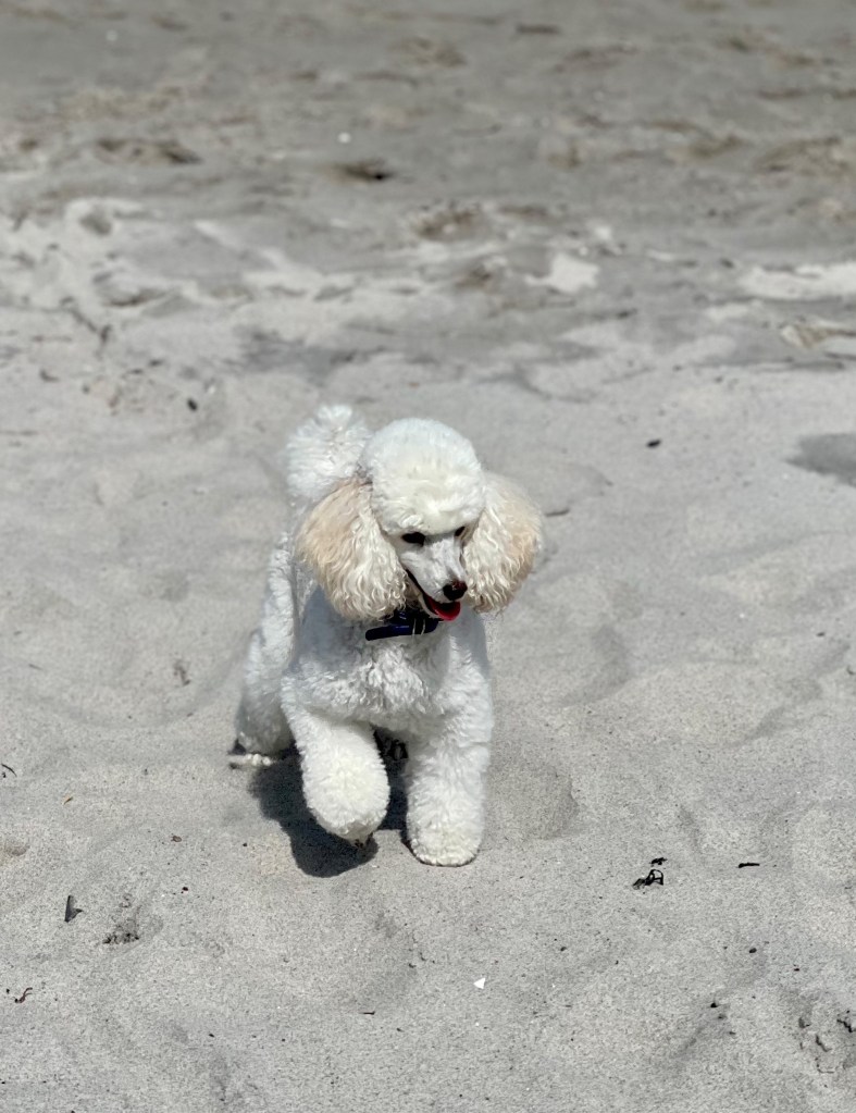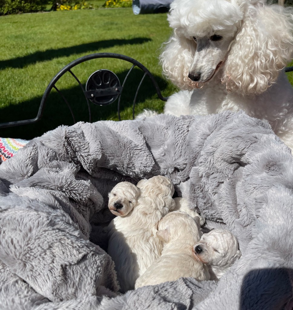 Bald wird mein weißer Toypudelrüde „Wallenberg’s Z-Wacker Wacker“ zuchttauglich geschrieben. Er ist ein Sohn vom sehr erfolgreichen finnischen Toy „Executive League of Gentlemen“ _ Frodo und „Princess Livable Future White Syringa“ _ Monika